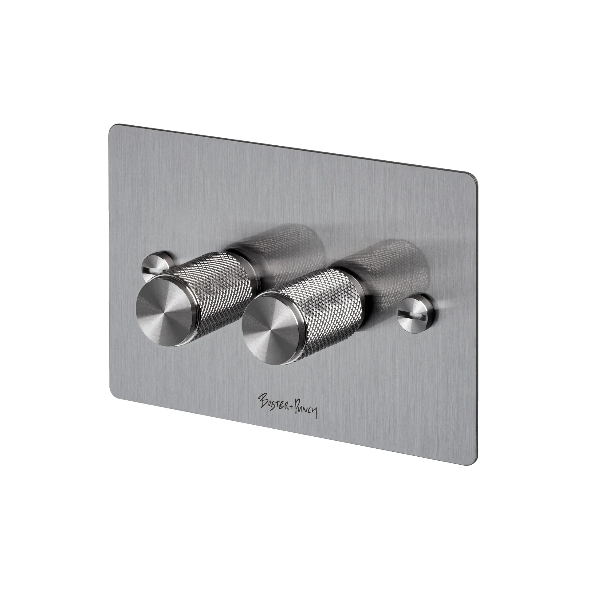 The dimmer is finished with a flat plate and the Buster + Punch signature solid metal penny buttons.