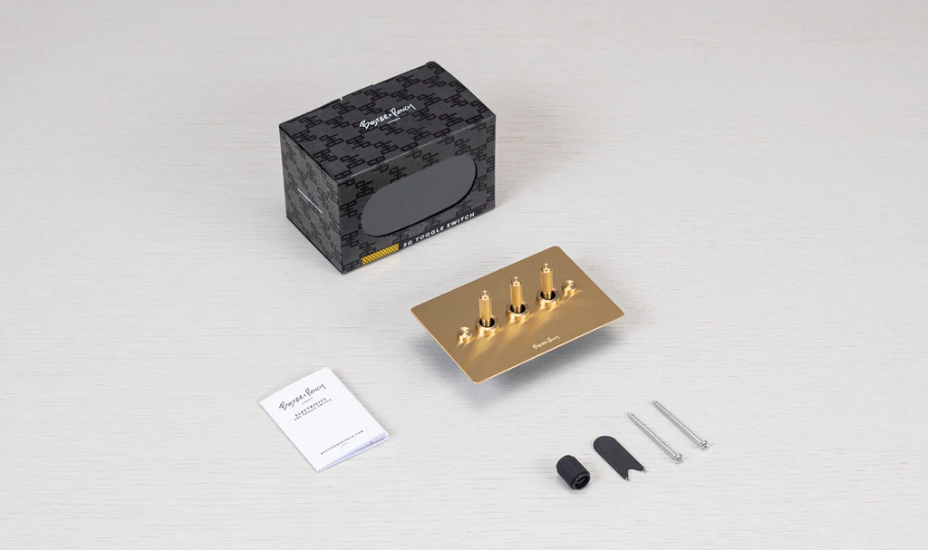 The toggle arm is made from solid metal and features Buster + Punch signature diamond-cut cross knurl pattern, to feel amazing with every touch. The toggle switch is finished with Buster + Punch signature solid metal coin screws.