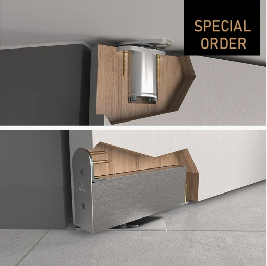 SPECIAL ORDER – Enquire for more information Pivotica Pro 150 in floor is a self-closing pivot hinge in-floor plate option for interior doors up to 150kg, providing soft-close and wall protection. Pivotica Pro is designed for interior pivot doors weighing 150kg. The ‘in floor’ option for the Pivotica Pro pivot hinges is embedded in the floor with a lower profile footplate than the standard Pivotica Pro models. Thanks to its compact size, the Pivotica Pro is quick and easy to install and is the perfect solution whether you are using single, double or floor-to-ceiling doors. It will hold the door at 90 degrees or closed and it is suitable for floors with underfloor heating. This self-closing pivot hinge in-floor plate option allows the door to be installed with a slight gap between the door and floor. We recommend using this pivot hinge in conjunction with the Magnotica magnetic contactless pivot door closer.
