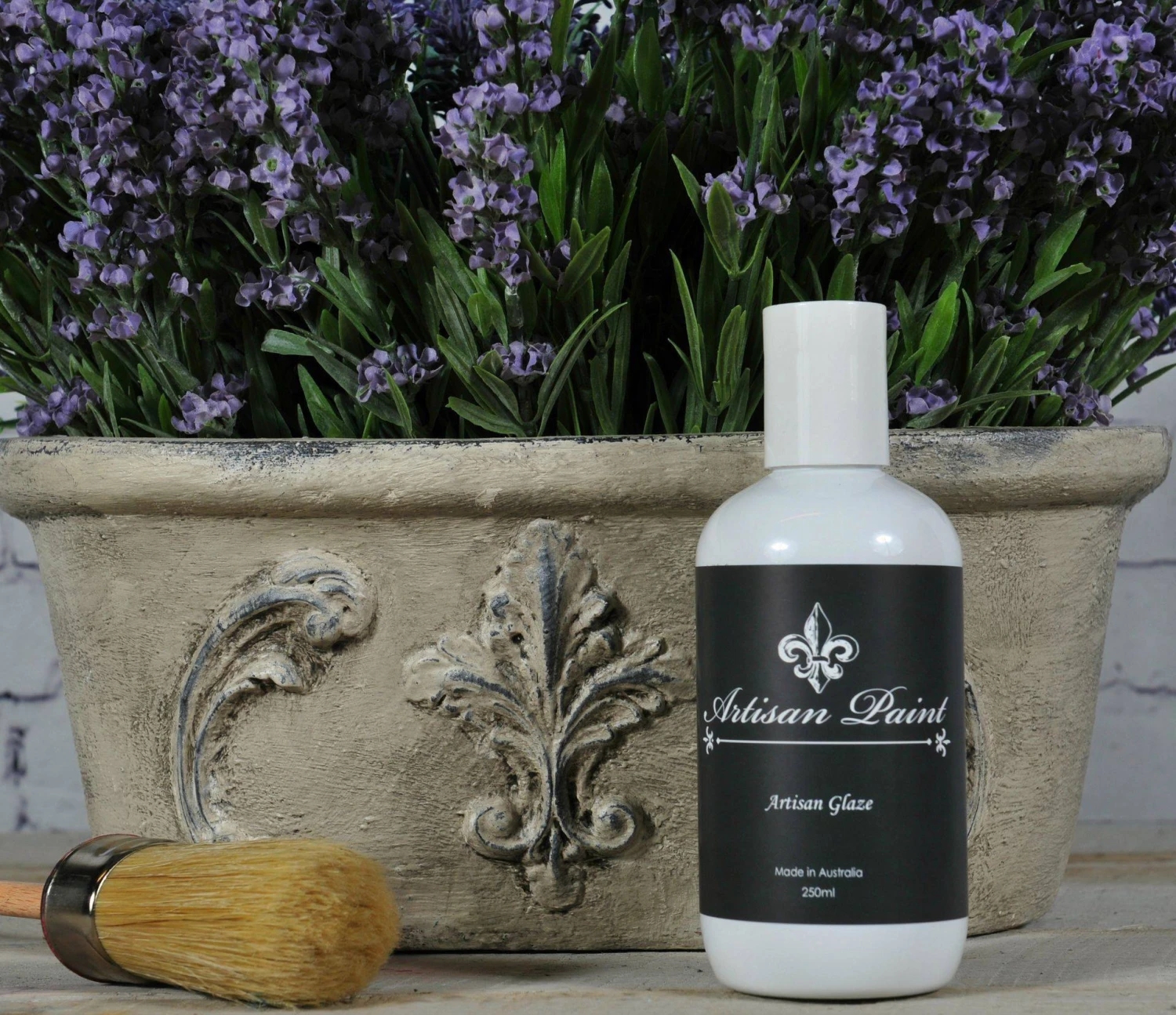 Sometimes you need to be able to age and distress something and don’t want to use wax (such as something that will be outside) Our Glaze is a perfect solution! It can be tinted to any colour you like with Artisan Natural Chalk Finish, Artist acrylics, metallic etc. Seal your piece with our Flat Matte Sealer and then apply your glaze. Ensure that the glaze is pressed well into any crevices, carvings or mouldings. Wipe off gently with a cloth leaving glaze in the crevices. Additional glaze can be removed with a damp cloth. Our glaze dries to a matte waterproof finish but another coat of Artisan Acrylic Sealer can be added for further protection if desired.