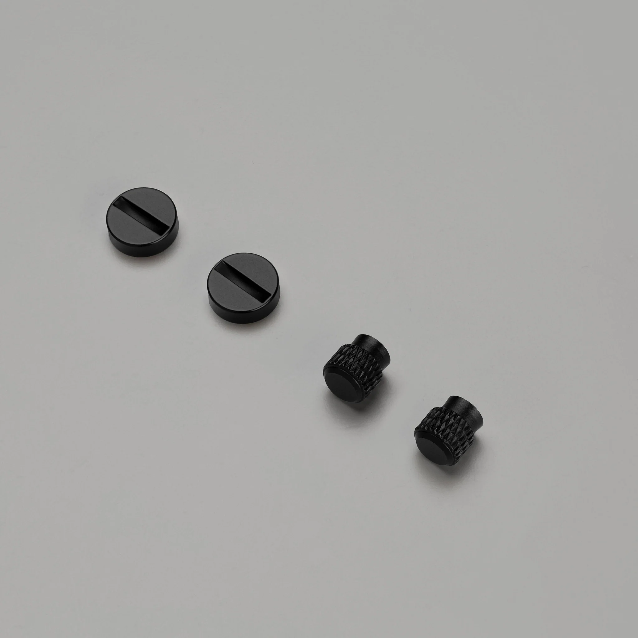 The kit consists of 2x coin screws and 2x diamond-cut knurled toggles.