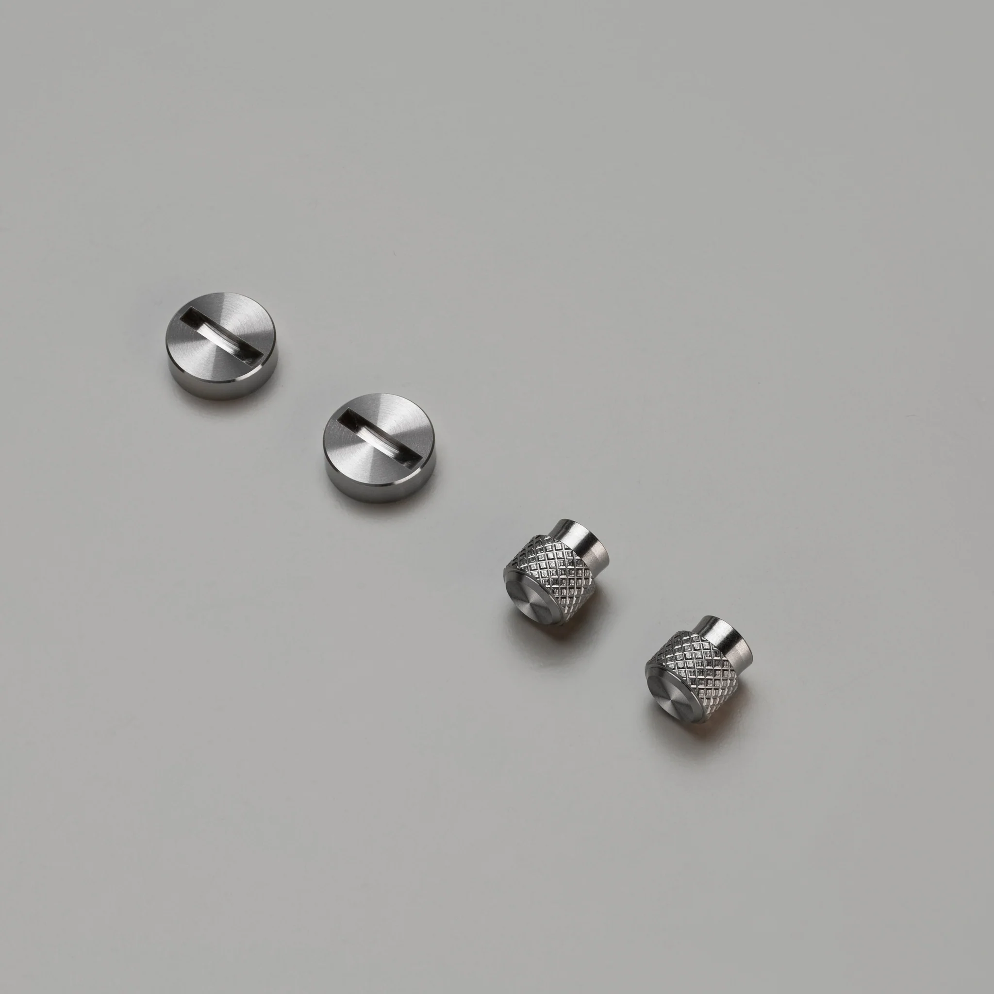 The kit consists of 2x coin screws and 2x diamond-cut knurled toggles.