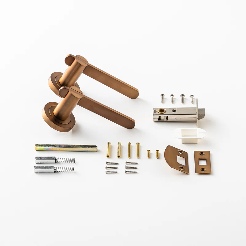 This truly unique lever set features a distinctive intersecting design detail. Crafted in solid brass with an oiled bronze finish. The lever handle comes as a back-to-back set with a matching finish striker plate and is designed to be fitted to internal doors.