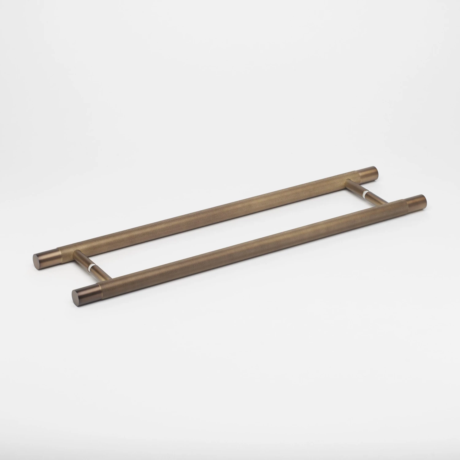 500mm long Kintore Entry Pull with elegant knurling detail, crafted in solid brass with an oiled bronze finish. Suitable for double sided cavity slider doors and entry doors. Comes as a pair with the mounting hardware for front and back installation.