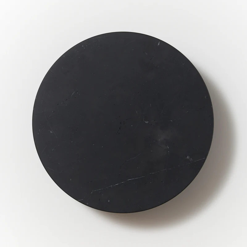 A show-stopping oversized circular back to back entry pull, crafted in solid Black Marquina Marble, with a honed finish.