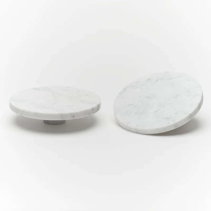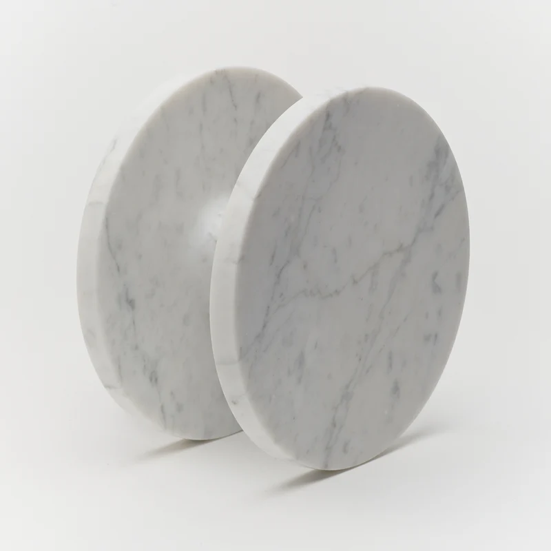 A show-stopping oversized circular back to back entry pull, crafted in solid Carrara Marble, with a honed finish.
