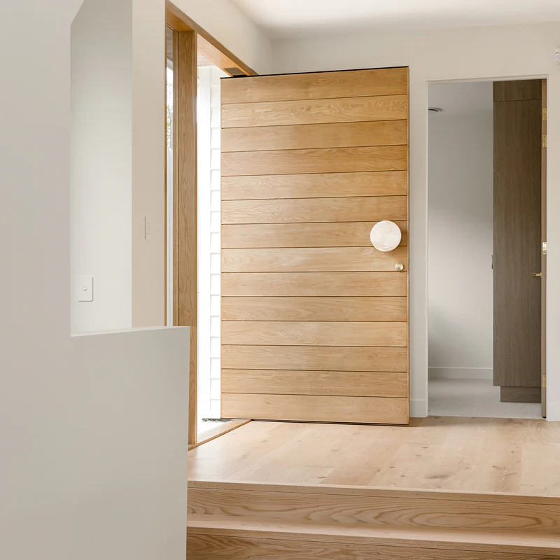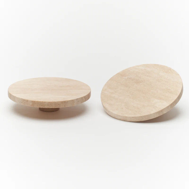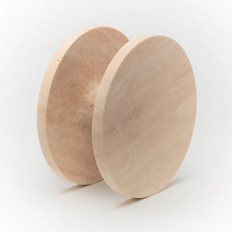 A show-stopping oversized circular back to back entry pull, crafted in solid Travertine, with a honed finish.