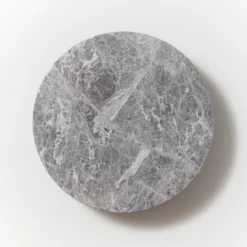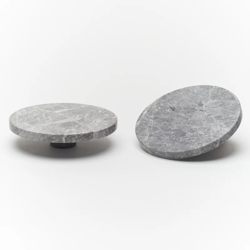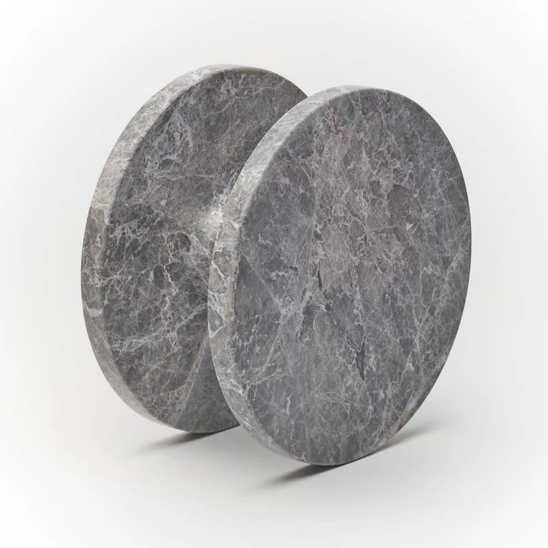 A show-stopping oversized circular back to back entry pull, crafted in solid Tundra Grey Marble, with a honed finish.