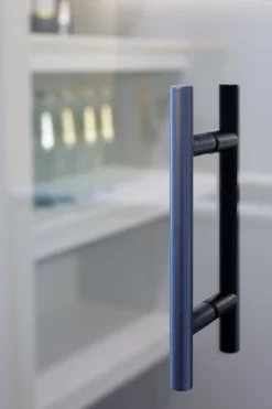 This streamlined and elegant handle is a very simple and effortless solution for a door handle. The material used enhances the verticality and the illusion of a continuous extruded piece of metal is complete in the polished finish option.