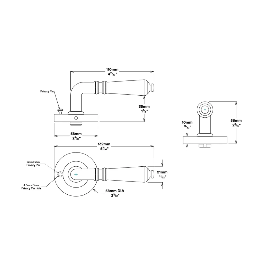 Privacy Kits – Include lever set on rose plus Tube Latch Split Cam ‘T’ Striker Backset 60mm plus Privacy Bolt Round Bolt Backset 60mm and Privacy Turn Oval Concealed Fix Round (D52mm x P23mm).
