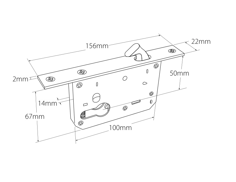 This sliding door mortice lock, hook style is always used with escutcheons and a euro cylinder.