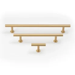 Castella Stirling handles are available in 2 lengths, 128mm and 192mm centres, and a 50mm T knob, and 2 finishes – Matt Black, Satin Brass and Bronze