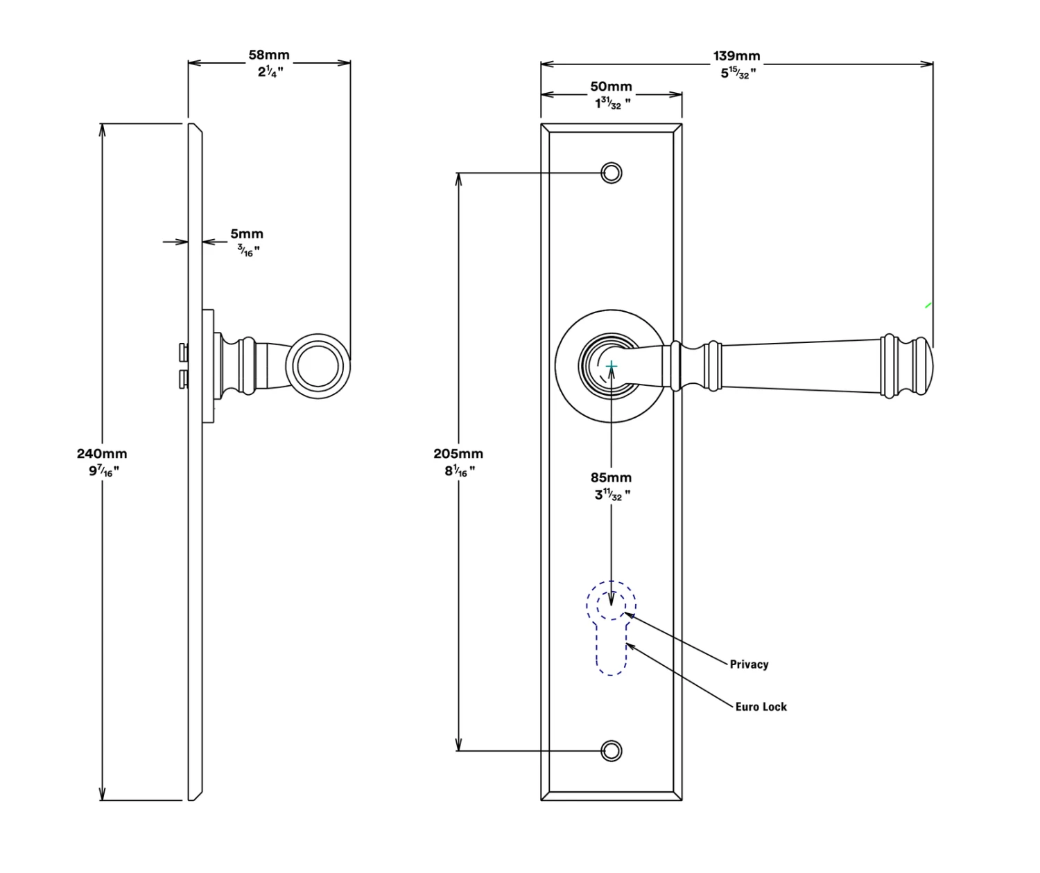 Privacy Kits – Include Privacy lever set plus Tube Latch Split Cam ‘T’ Striker Backset 60mm plus Privacy Bolt Round Bolt Backset 60mm.